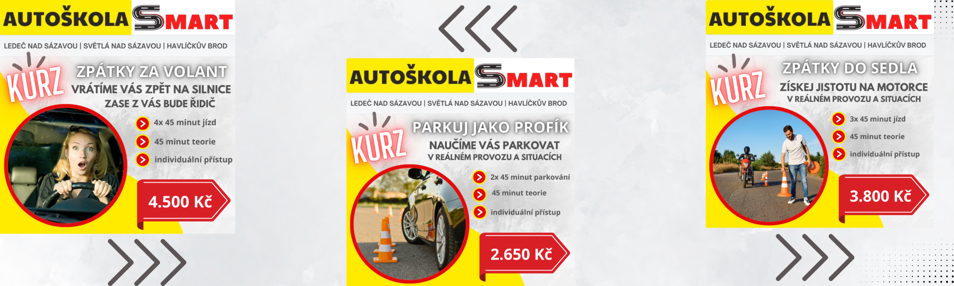 | Parkuj jako profík | 2×45 minut parkování + 45 minut teorie, individuální přístup | 2 650 Kč | Chci objednat |